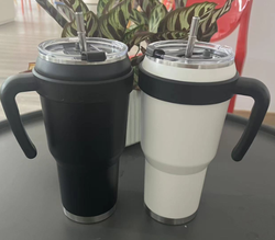 Tazza isolata in acciaio inossidabile a doppia parete personalizzabile da 40oz con manico e tazza isolata sottovuoto in paglia