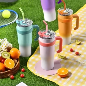 Оптовая продажа 40 унций из нержавеющей стали Изолированная бутылка с двойной стенкой вакуумный стакан с соломой и ручкой наружного портативного типа